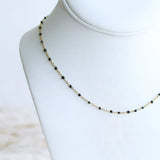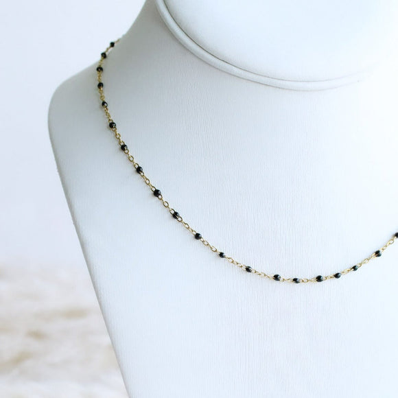 Enhance your everyday style with our stainless steel dainty chain necklace, accented with elegant black beads. This versatile piece strikes the perfect balance between simplicity and sophistication, making it an essential addition to your jewelry collection. Ideal for daily wear, this necklace shines beautifully on its own, adding a subtle touch of elegance to any outfit. Its minimalist design also makes it perfect for layering, allowing you to create a personalized and trendy look by pairing it with a variety of our other necklaces. Crafted from durable stainless steel, this necklace promises to maintain its polished finish and charm, making it a timeless accessory you'll reach for again and again.