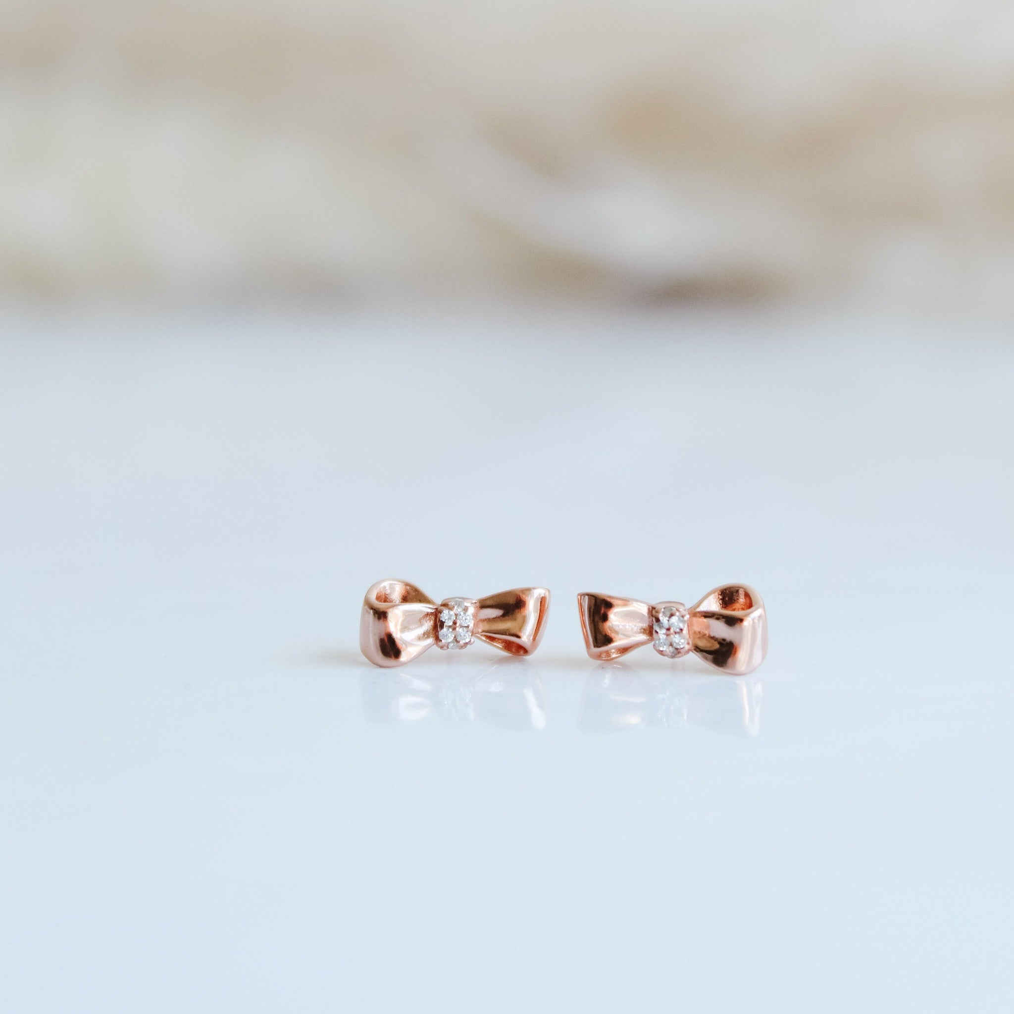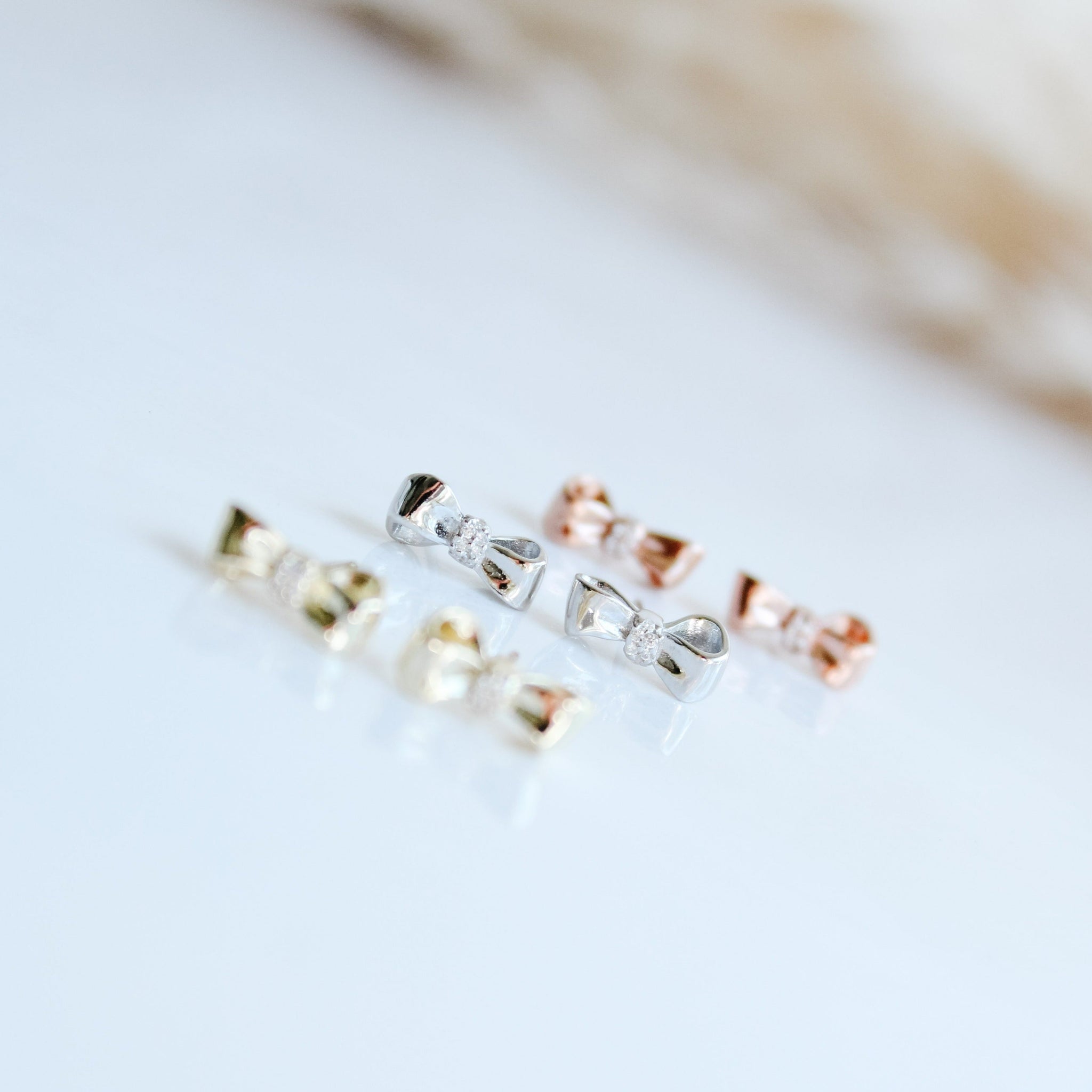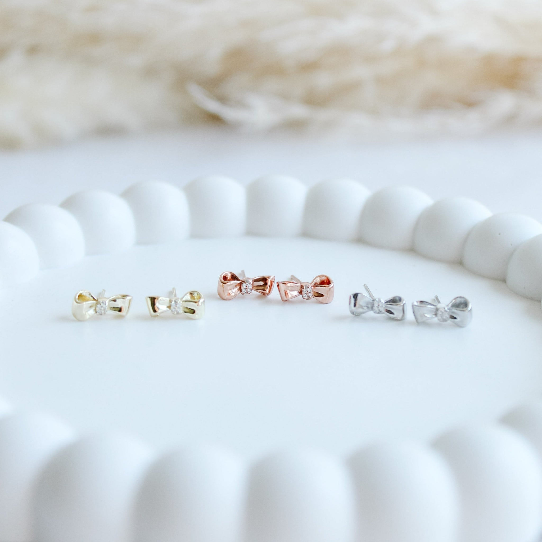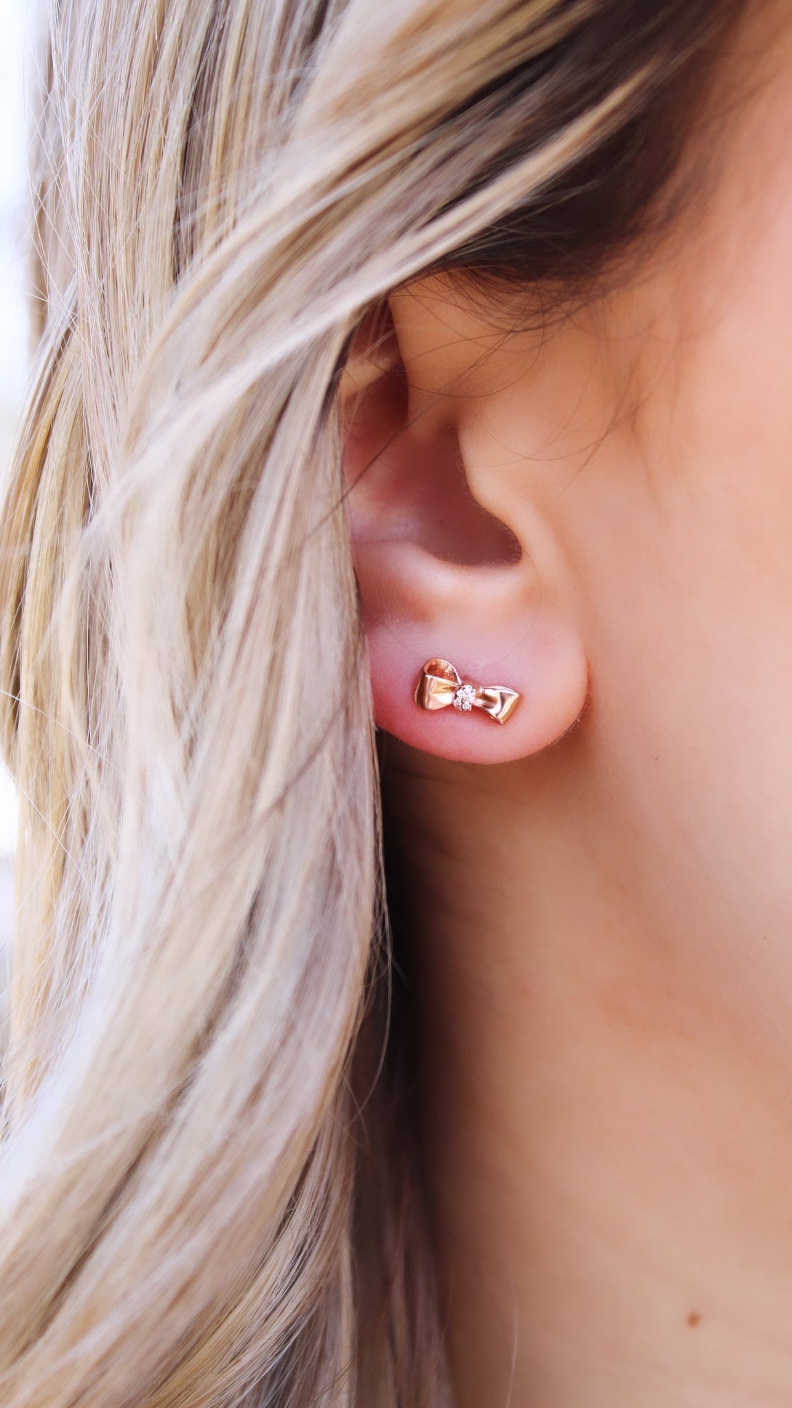 Introducing our Betsy Bow Stud Earrings, the epitome of elegance and femininity. These delicate studs feature a beautifully crafted bow adorned with tiny crystals that add just the right amount of sparkle. Smaller in size, they offer a subtle yet sophisticated touch to any outfit, making them perfect for both everyday wear and special occasions. Exquisitely designed and undeniably pretty, these earrings are a must-have addition to your jewelry collection.
