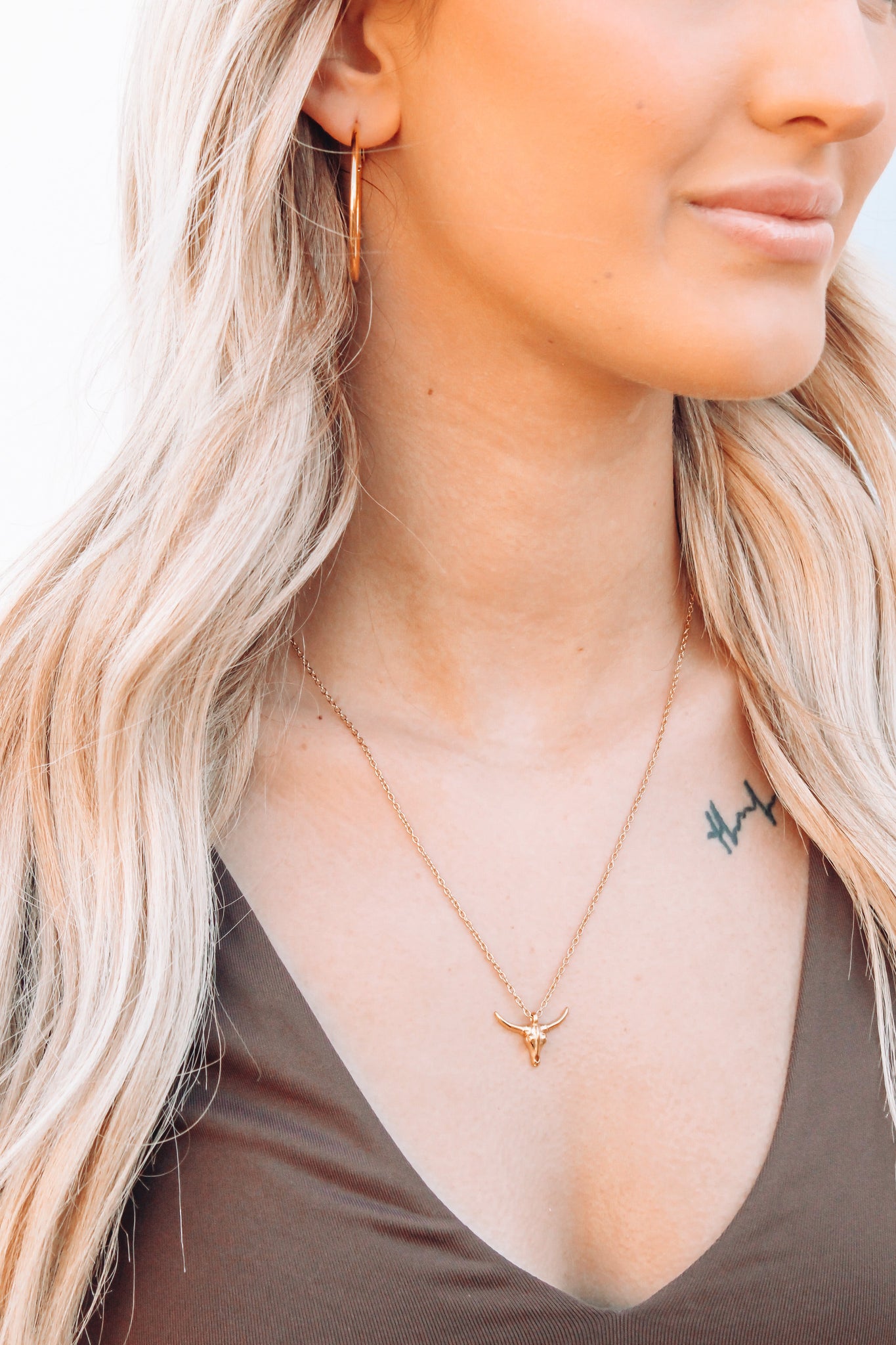 This Boho Bull Necklace is a mash up between modern country and chic and trendy. Perfect for layering, or for wearing on its own, this necklace is a great addition to any outfit.