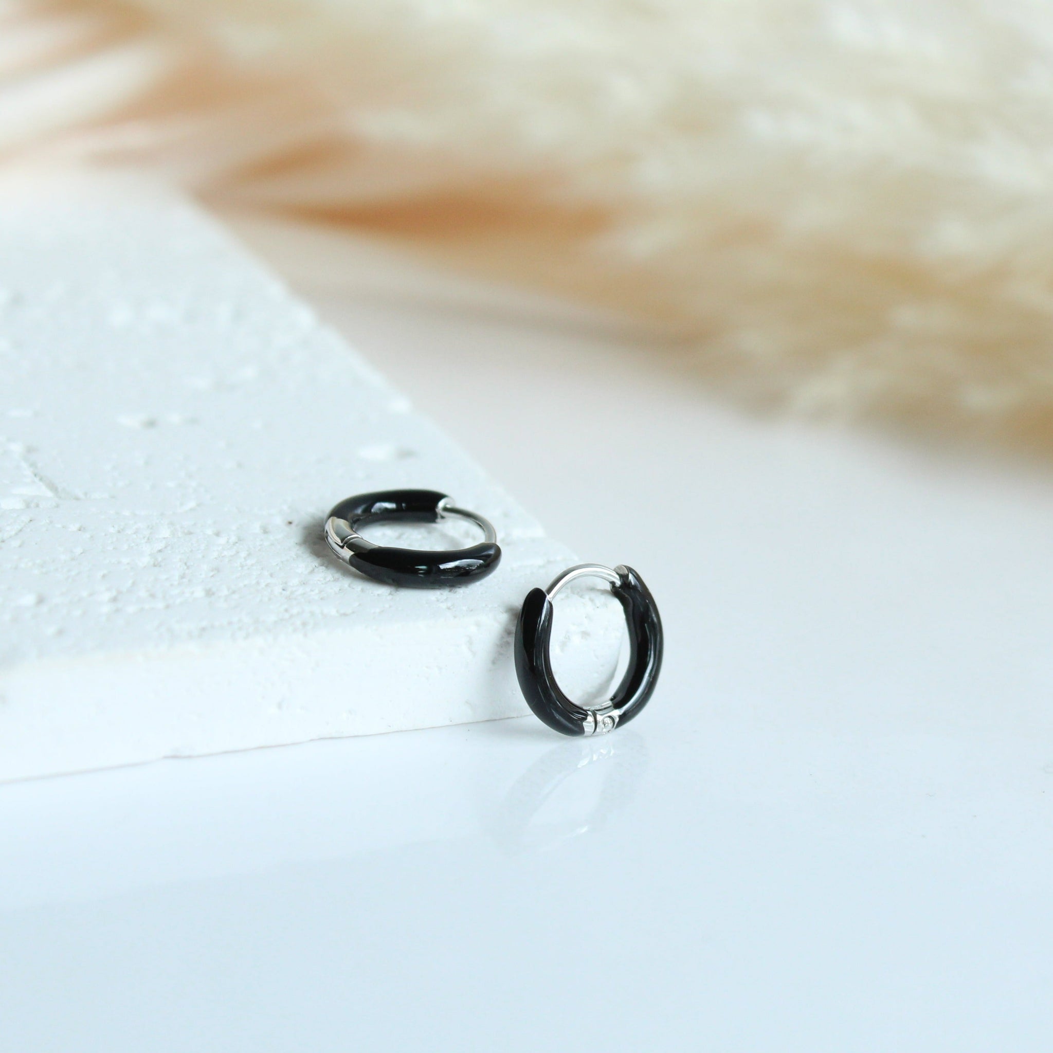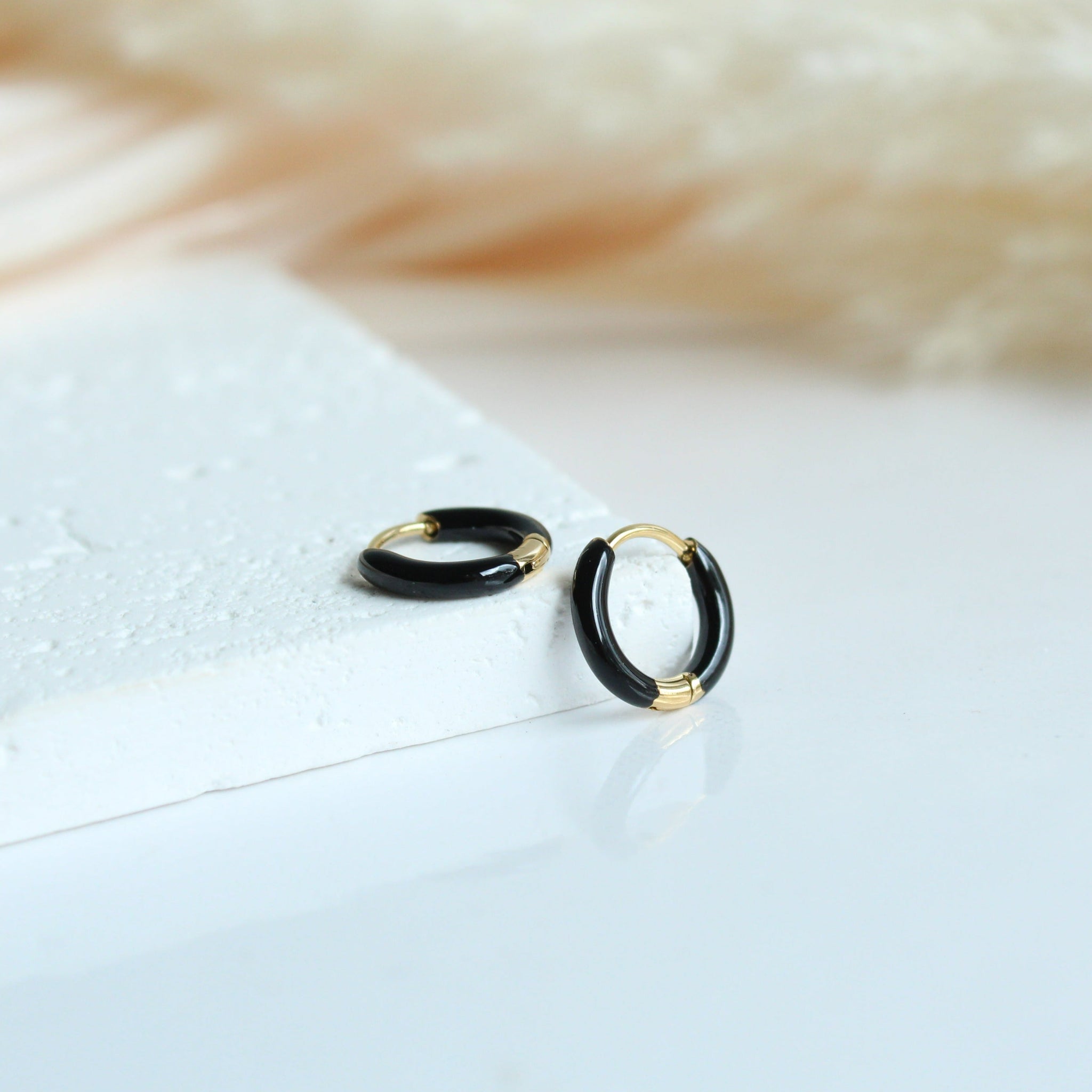 Add a touch of edgy sophistication to your daily style with our small black enamel hoops. Designed for everyday wear, these hoops are as unique as they are versatile, ensuring you never have to take them off.