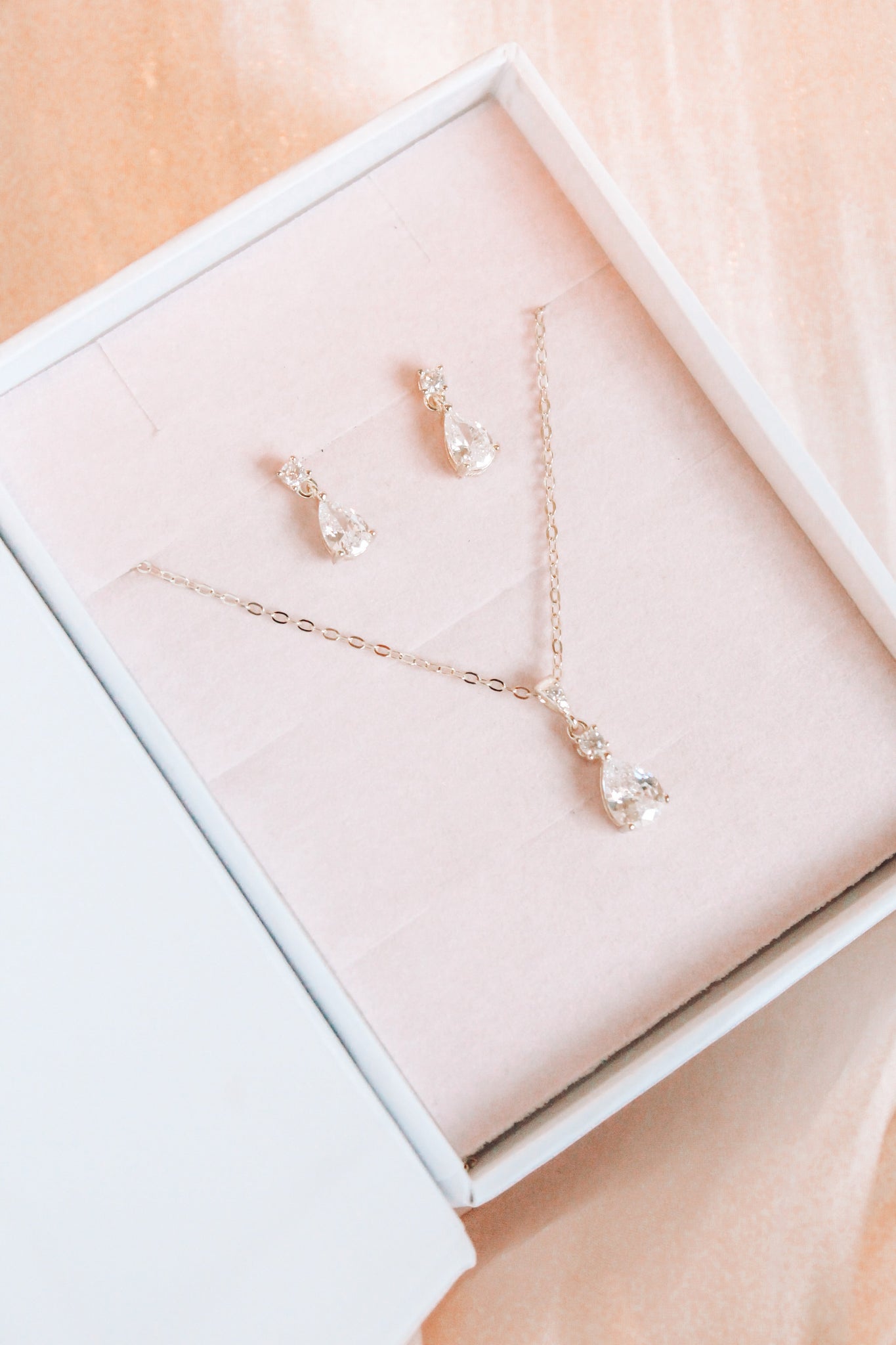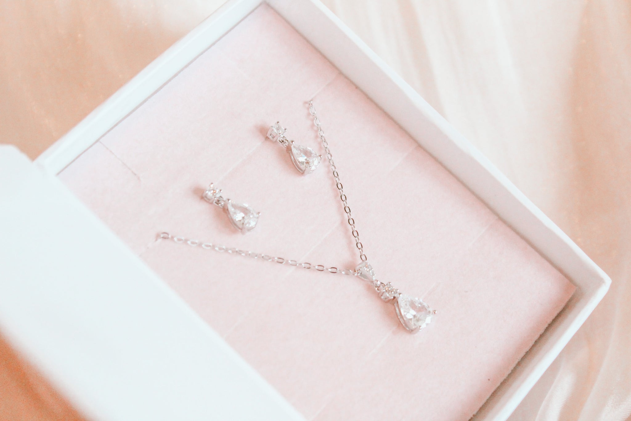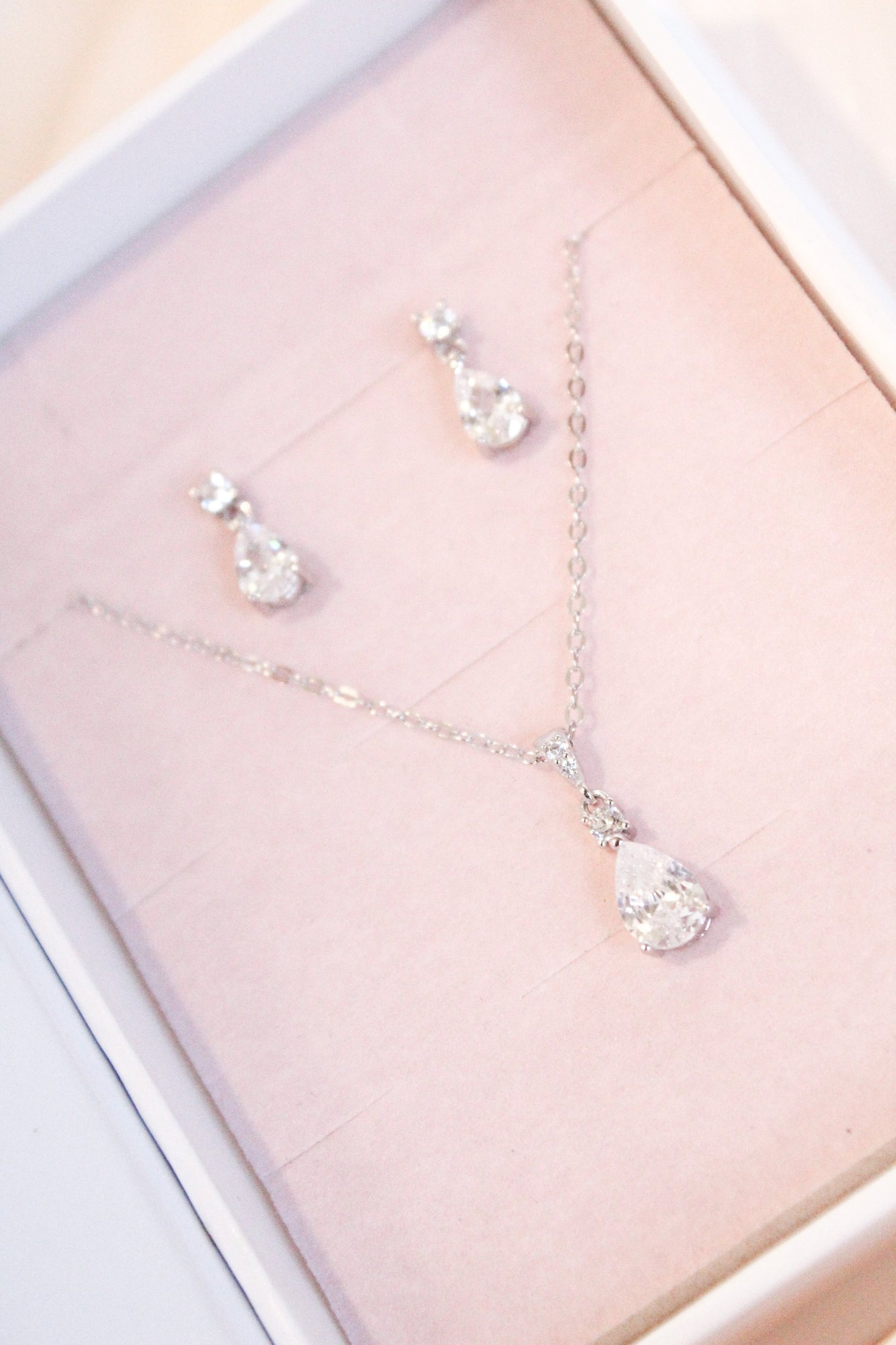 Sleek and timeless, the Eternity Earrings & Necklace set features an elegant tear drop stone set in sterling silver. A perfect accessory for special events, this luxurious set is sure to stand out and make a lasting impression.
