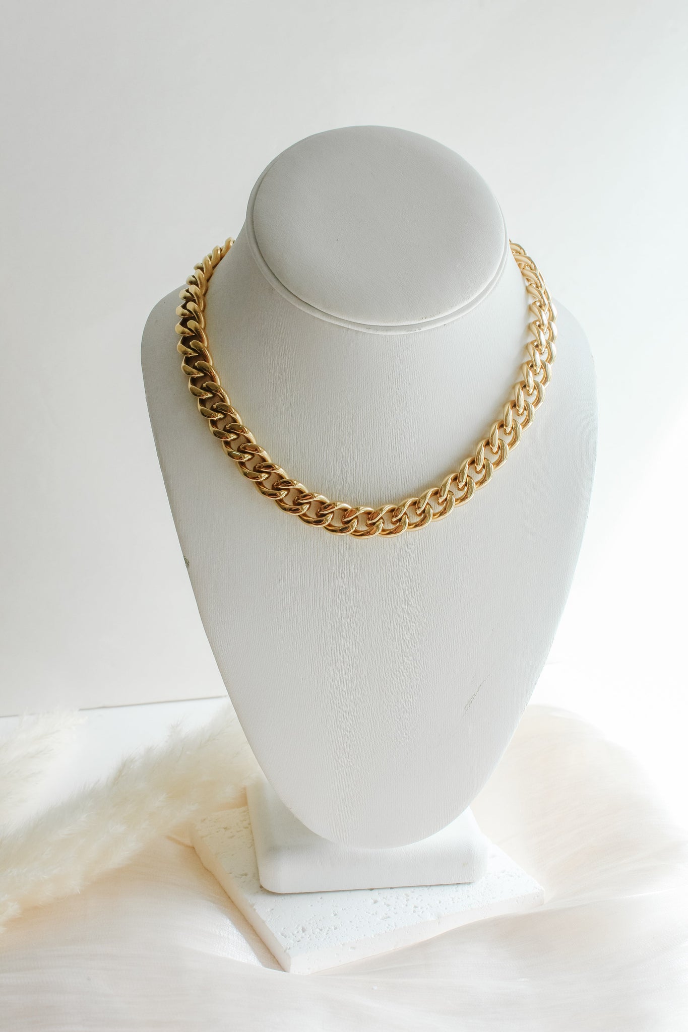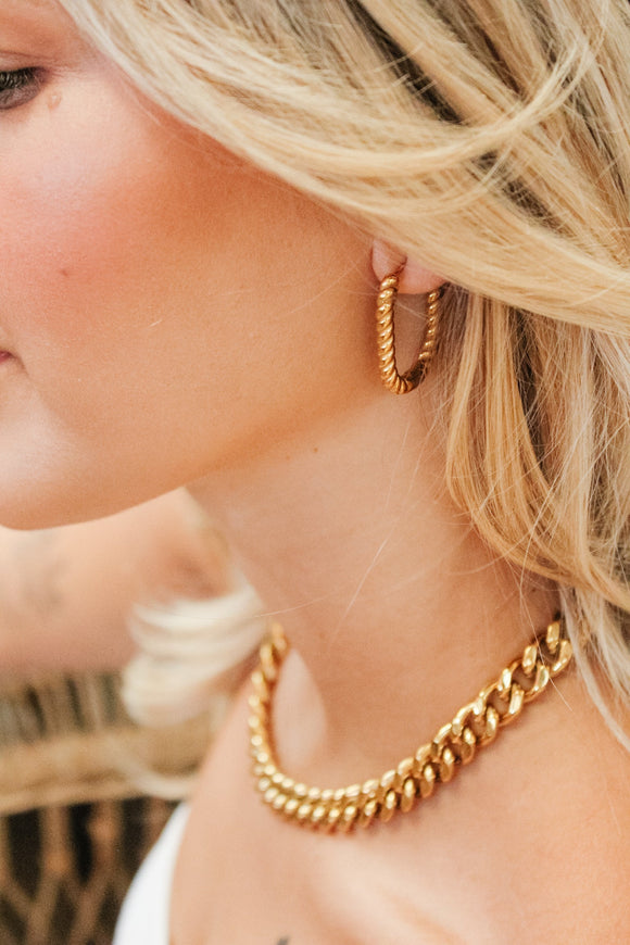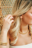 Bold and effortlessly cool, the Kimberly Cuban Chain brings instant polish to any outfit. With its chunky links and timeless gold finish, this necklace is your new everyday power piece. Wear it solo for impact or layer it up for that signature Sweet Three stacked look.