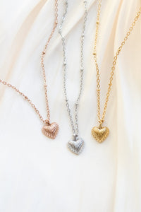 Fall in love with our stunning Mia heart pendant necklace, featuring exquisite, one-of-a-kind details that make it truly special. This timeless piece adds a touch of elegance and romance to any outfit, whether you're dressing up or keeping it casual.
