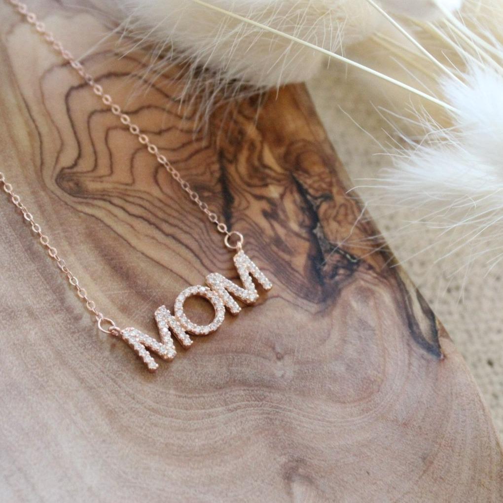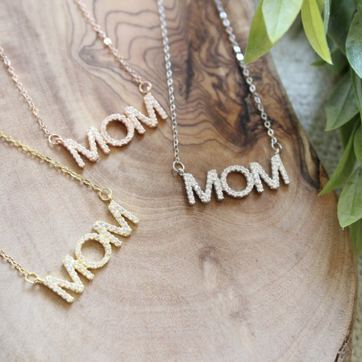 Our MOM necklaces are supercharged with sparkle because moms deserve the extra shine!