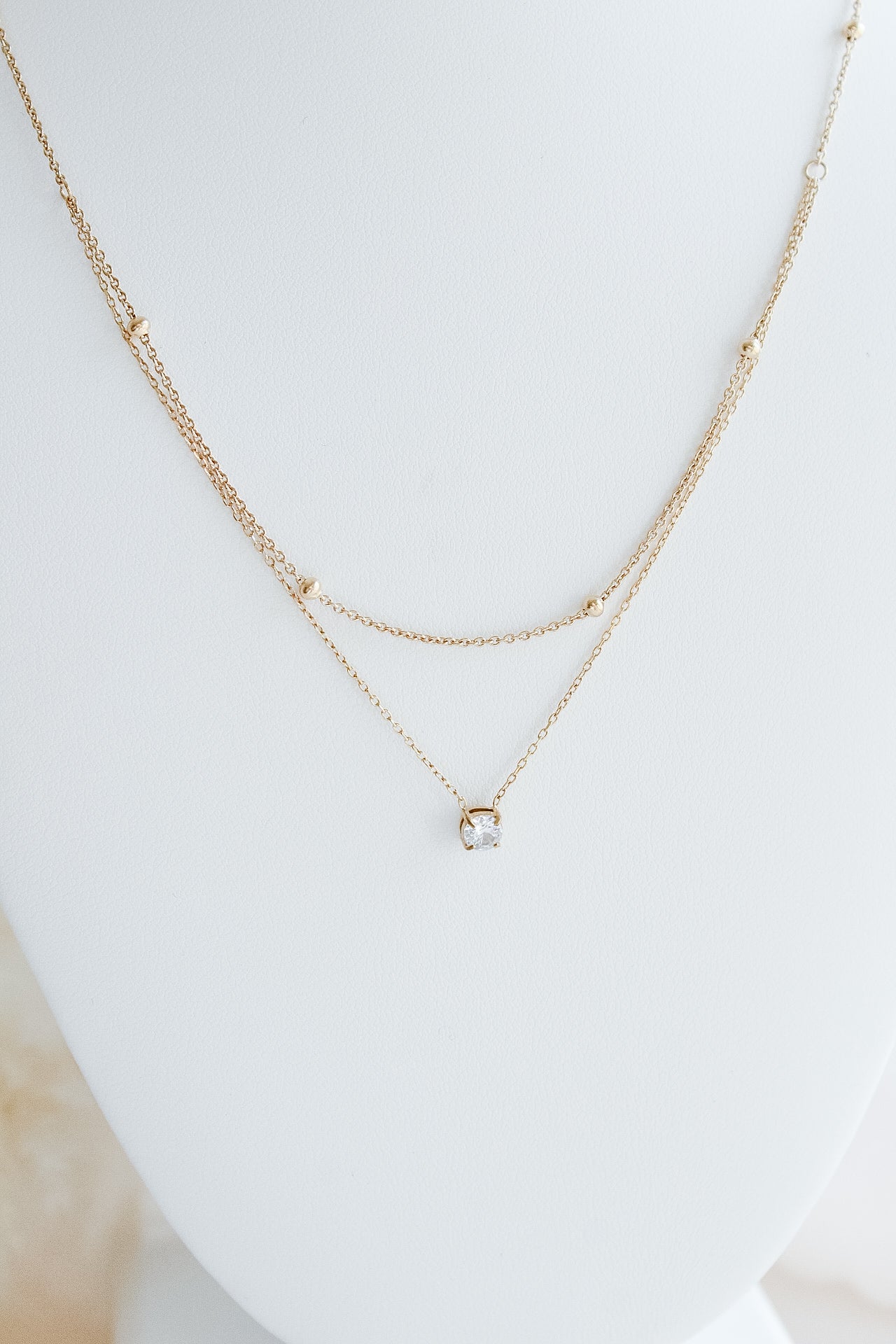 Add a touch of elegance with our Shaina Necklace, featuring a unique layered design that’s both sophisticated and eye-catching. Each layer is crafted to drape beautifully, accented by a single clear stone that adds the perfect hint of sparkle. This versatile piece complements any outfit, from casual chic to evening glam
