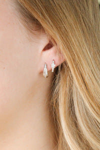 Whimsical and full of sparkle, the Starling Hoops feature a delicate CZ-lined star charm that adds a celestial touch to your stack. Designed in sterling silver with a huggie-style fit, these hoops shine bright in upper piercings and pair perfectly with your favorite studs or drops. A dreamy addition to any ear party.