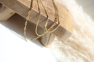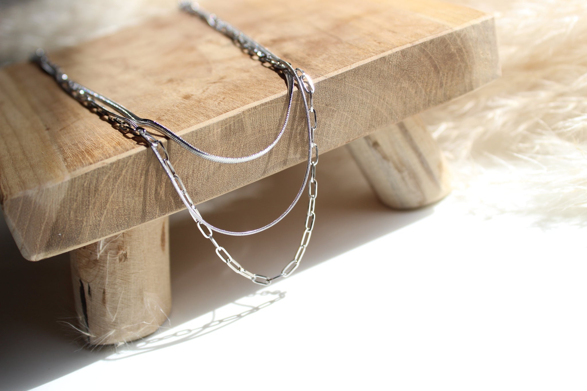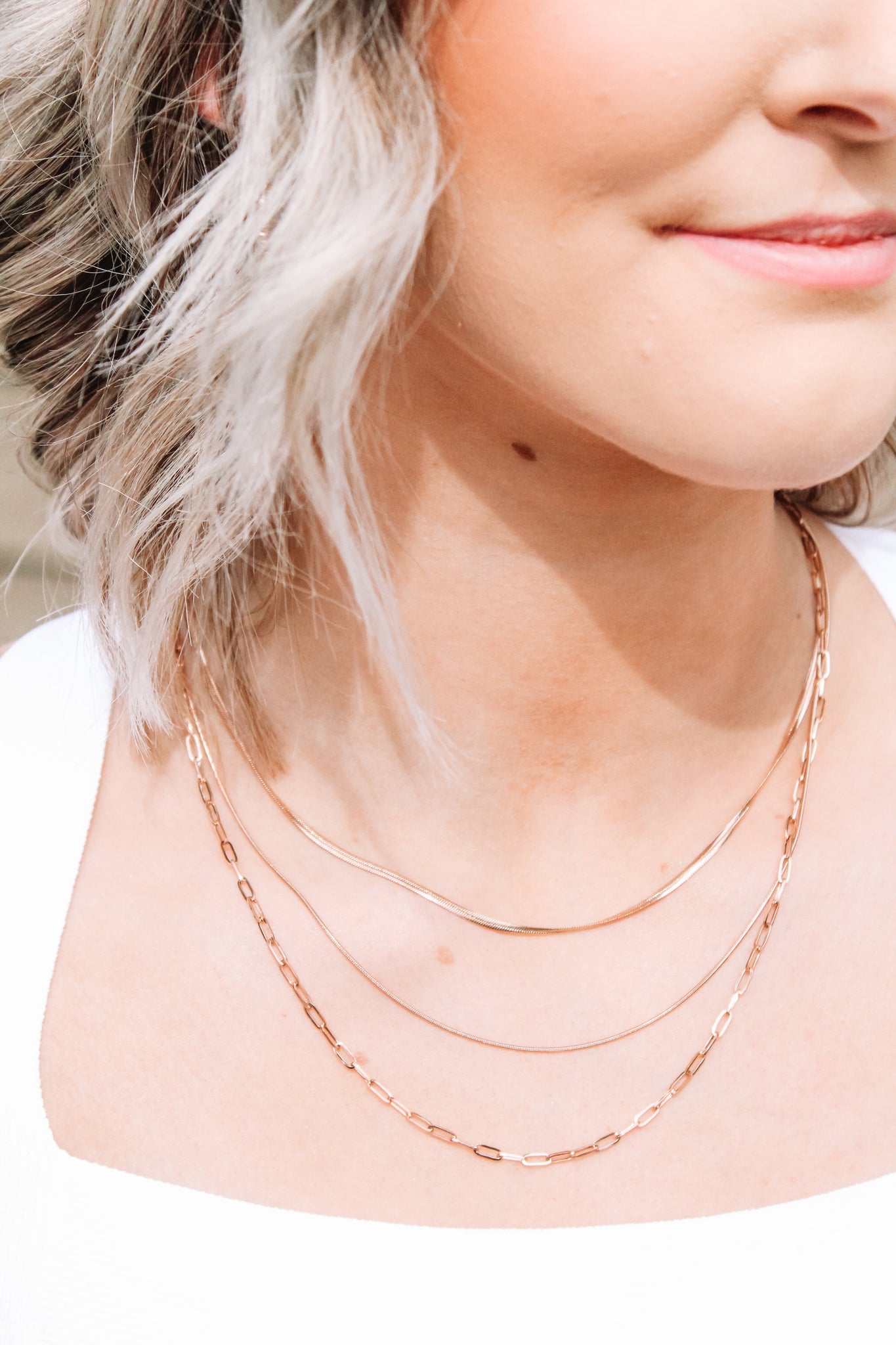 This gorgeous set of necklaces will definitely light up an outfit. Three layers - one simple necklace.